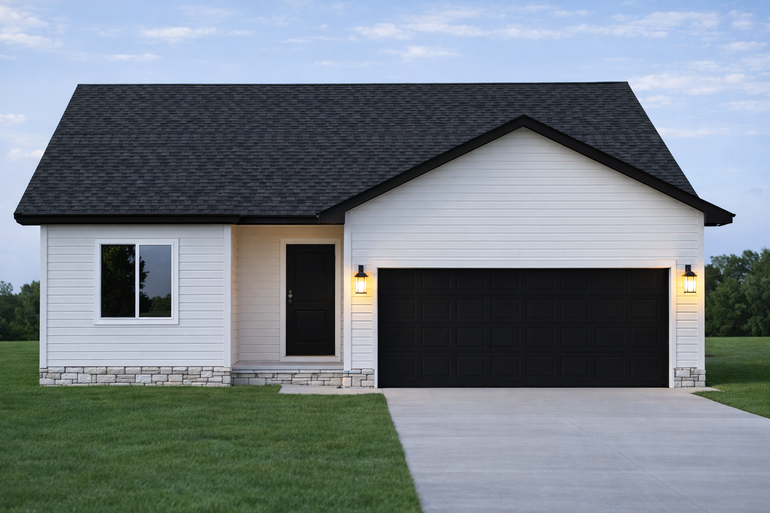 Front elevation features stone accents